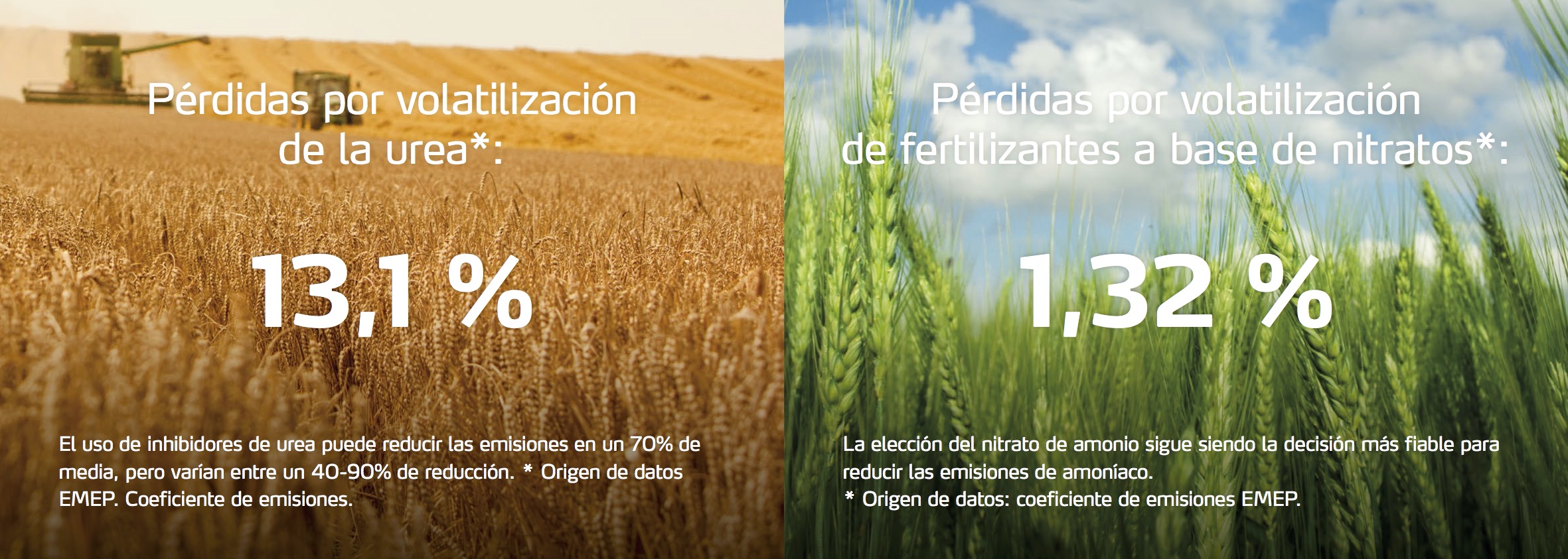 - Bajas pérdidas por volatilización. El fertilizante a base de nitratos proporciona un 90% menos de pérdida de amoníaco que la urea en la mayoría de las granjas, establecidas en los factores de emisión EMEP.