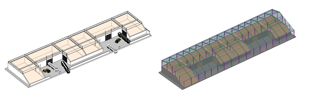 - Silo plano para almacenamiento: seis contenedores separados para almacenar productos con dos puntos de carga de camiones.