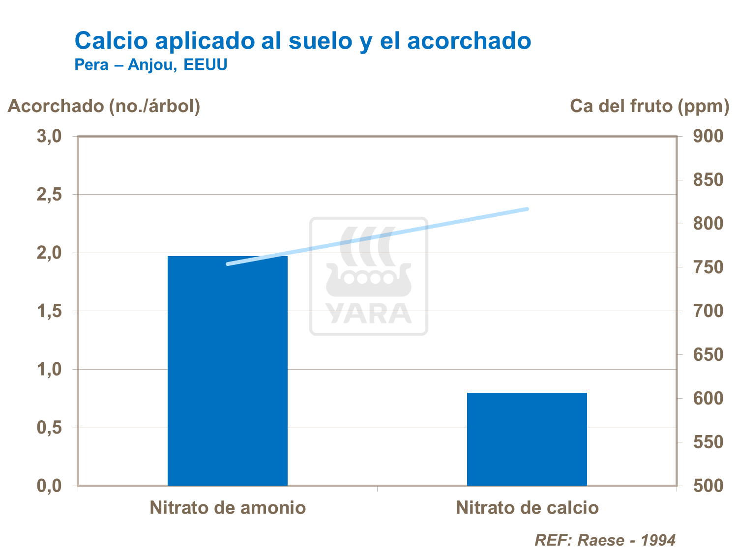 Las peras requieren el doble de calcio en el tejido del fruto comparado con cualquier otro fruto de pepita. Una nutrición de calcio correcta ha demostrado minimizar las incidencias de acorchado entre otros trastornos.
