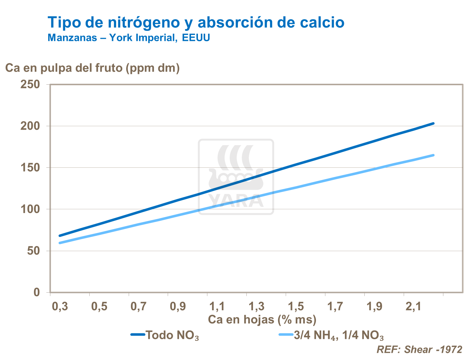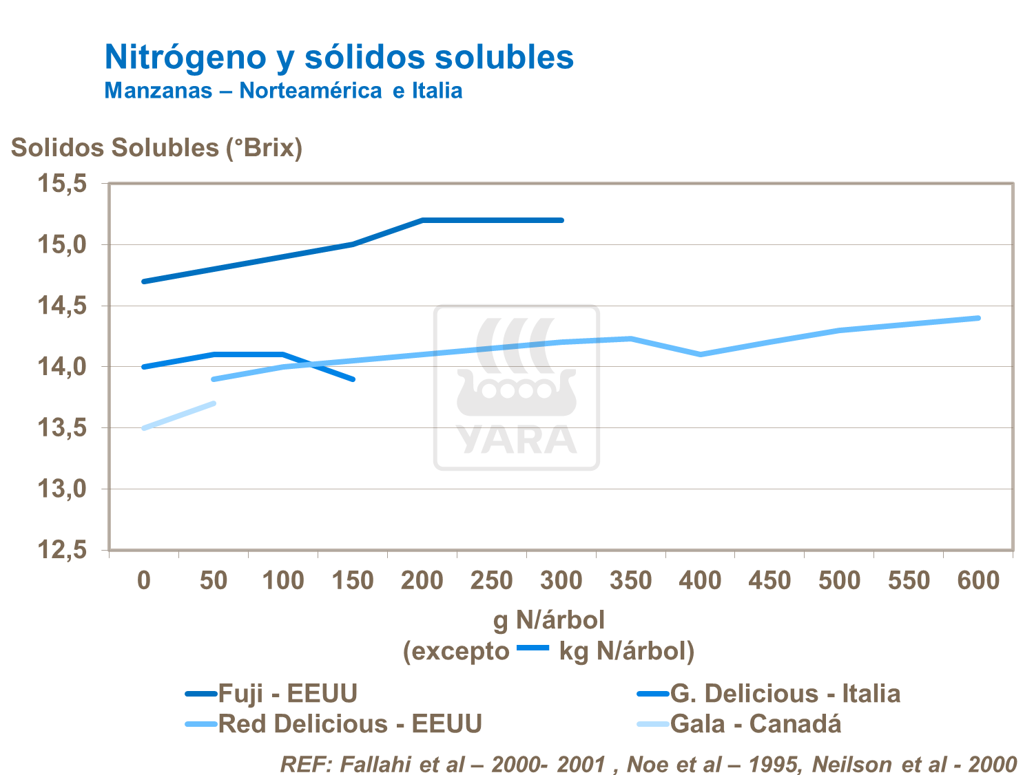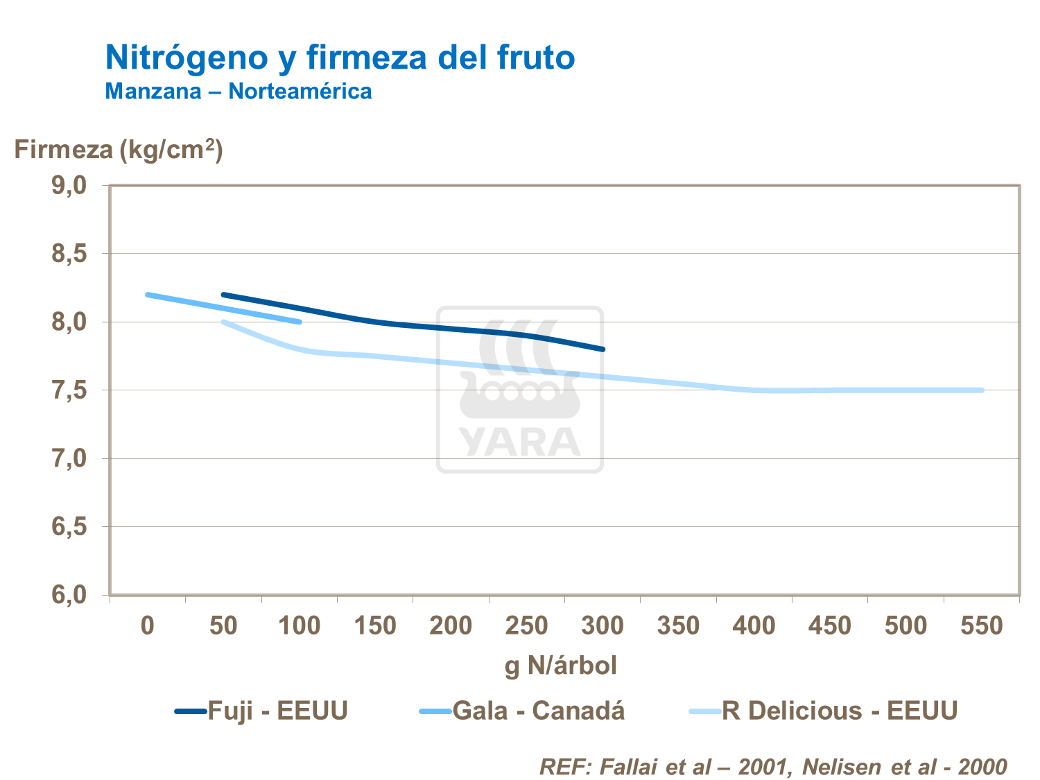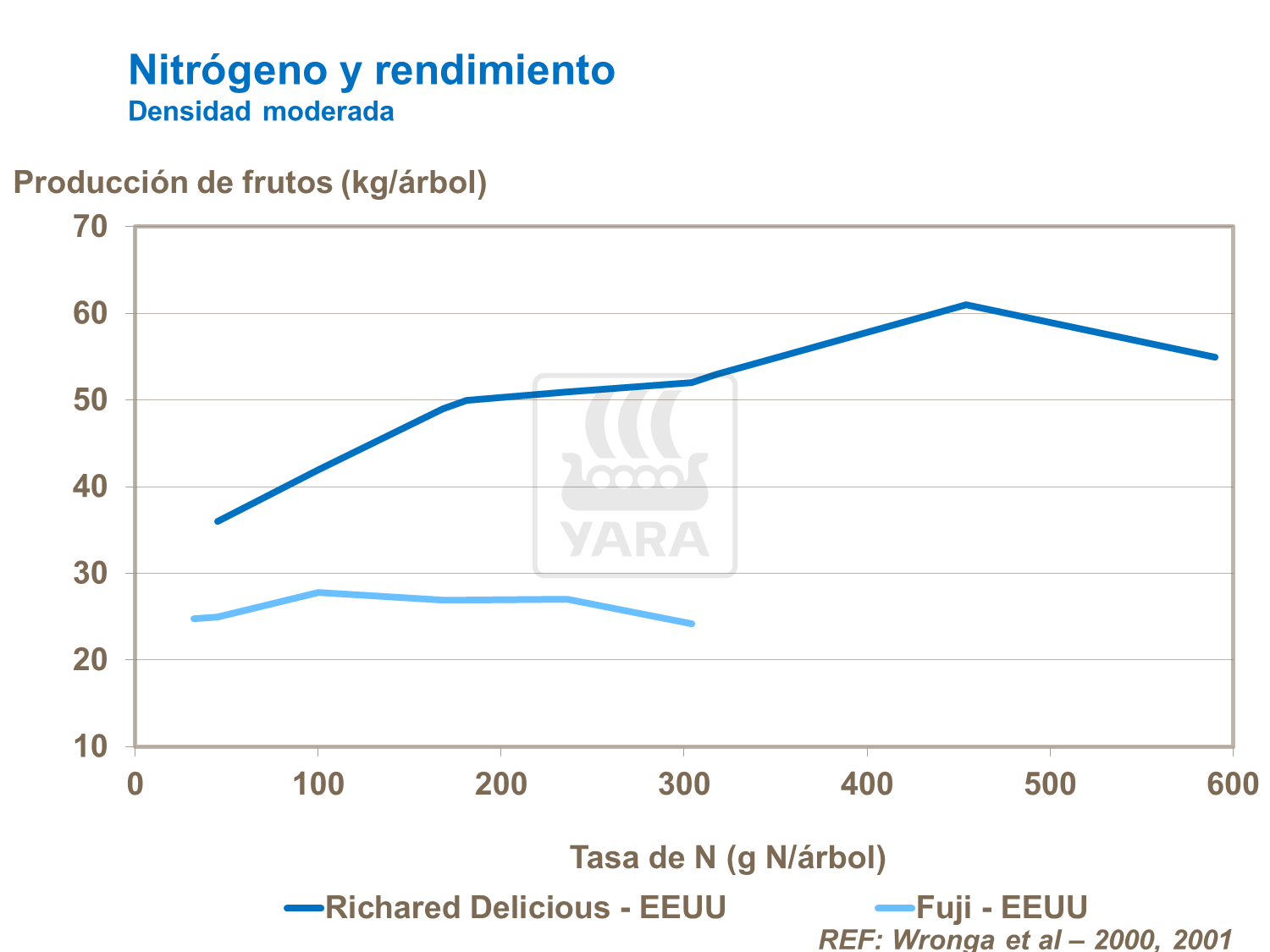 La respuesta óptima de N varía de acuerdo con la ubicación y factores de producción. La tasa y prácticas de aplicación se regulan mejor teniendo en cuenta ensayos locales. En general, la respuesta al fertilizante depende de la fertilidad del suelo, el nivel de nitrógeno en las reservas del árbol y el sistema de plantío.