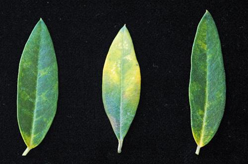 olivo, los síntomas podrían confundirse con los provocados por la deficiencia de Zn y Mn,