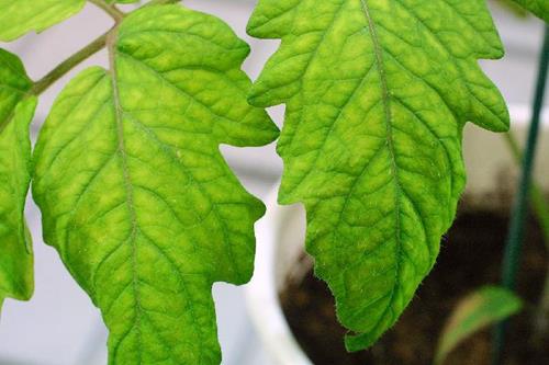 Deficiencia de azufre en las hojas